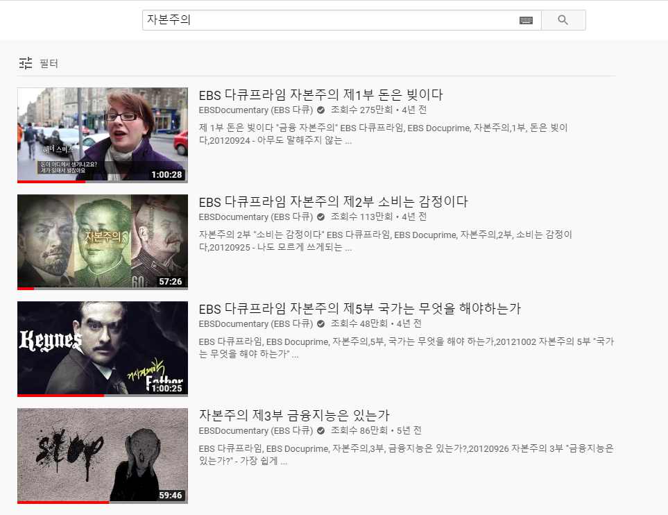 자본주의의 역사와 의미에 대한 설명을 굉장히 잘해주고 있는 다큐. 화폐 전쟁의 내용이 길고 어려워서 잘 이해가 안된다면, 자본주의 다큐를 보는 걸 추천.