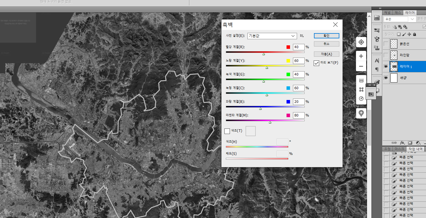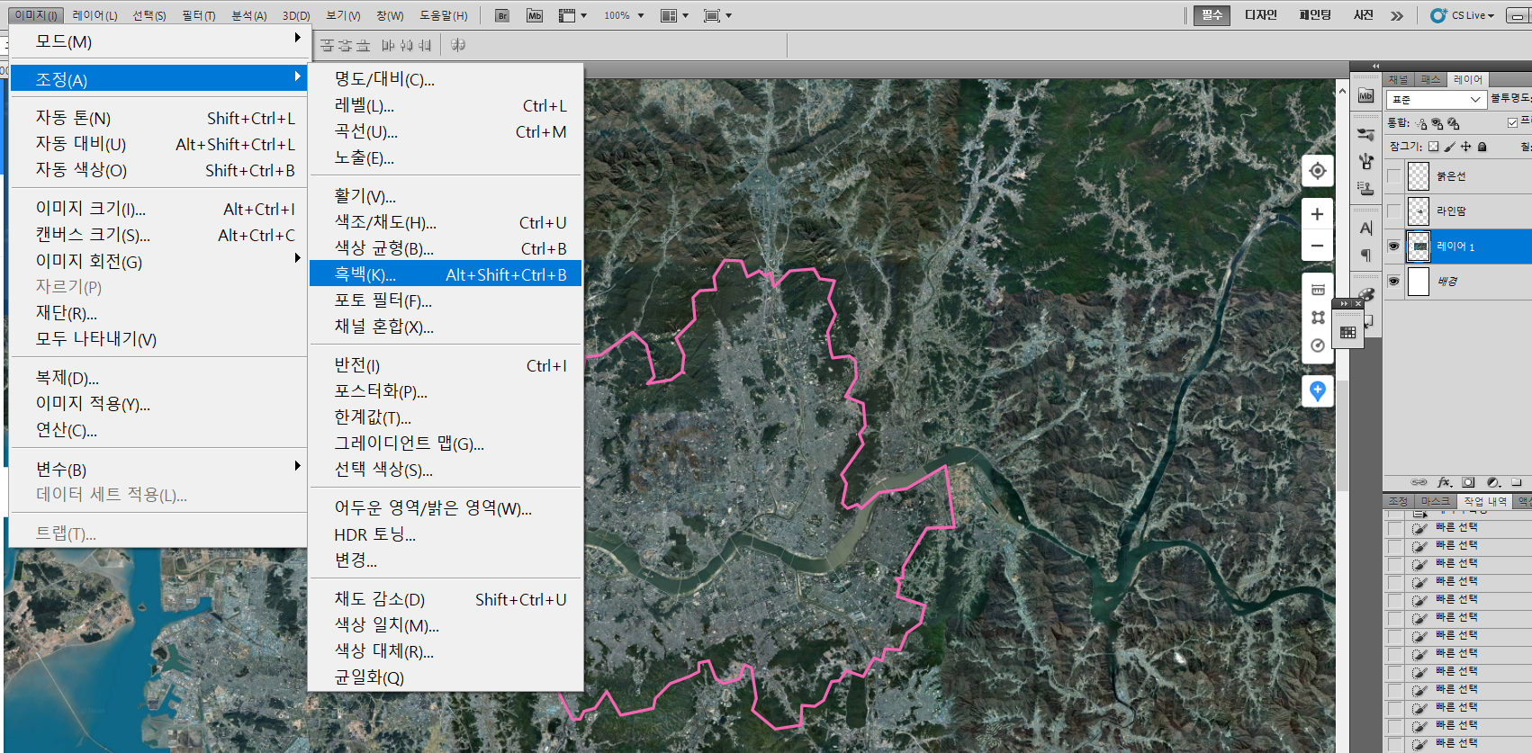 포토샵을 이용해 지도 라인 강조혹은 따는 방법에 대해 알아보겠습니다.