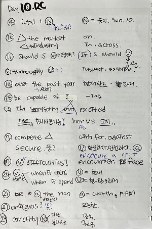팟7. 한줄한줄 다 읽기. 패러프레이징(뜻이 같은 단어) 잘 정리하기. 첫 문제 읽고, 지문 읽기. 문제 풀리면 다음 문제 읽고 지문읽기.